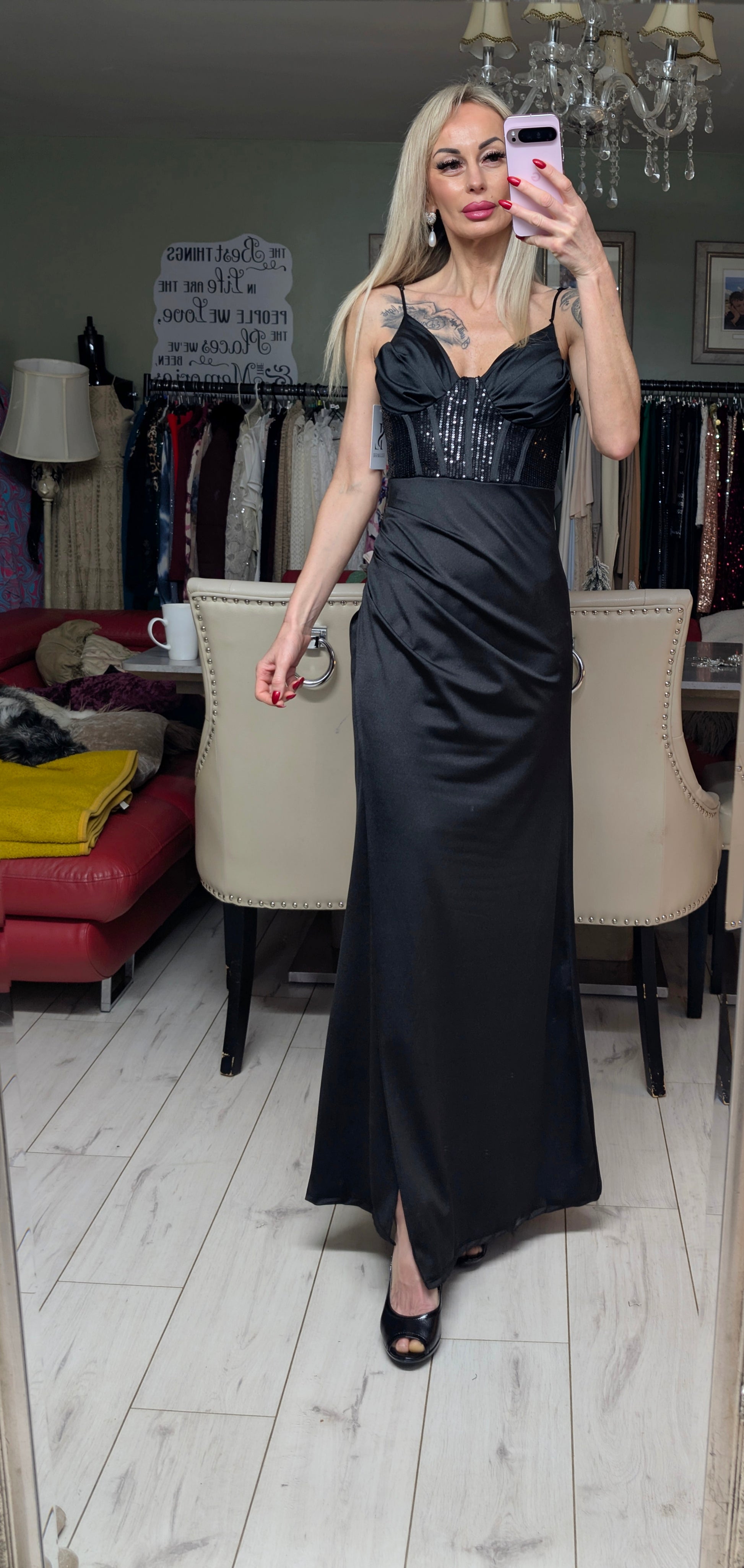 Black silk long dress. Elegant and classy. Size one - suitable from 8-12 uk