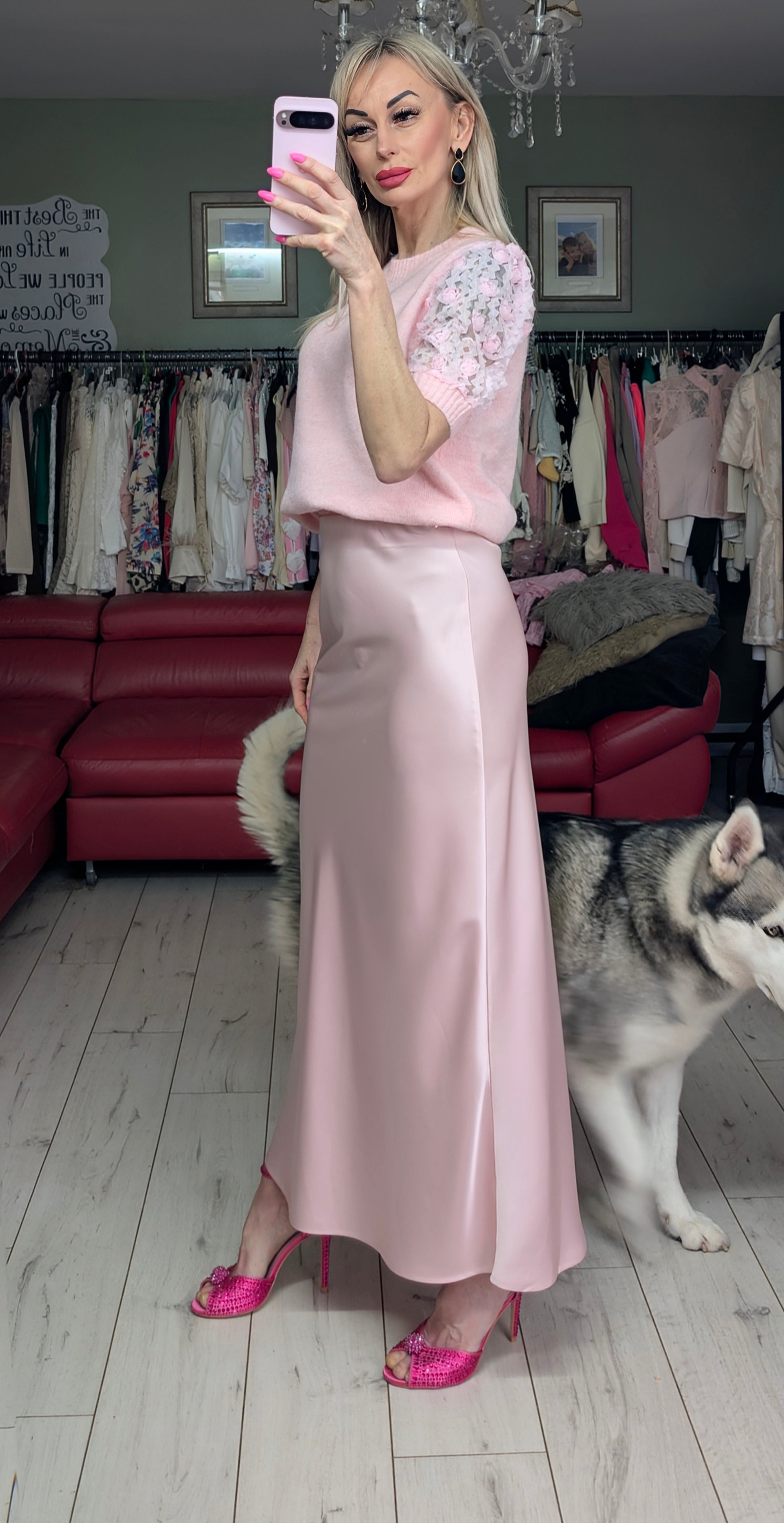 Light Pink Sweater With Roses On The Sleeves