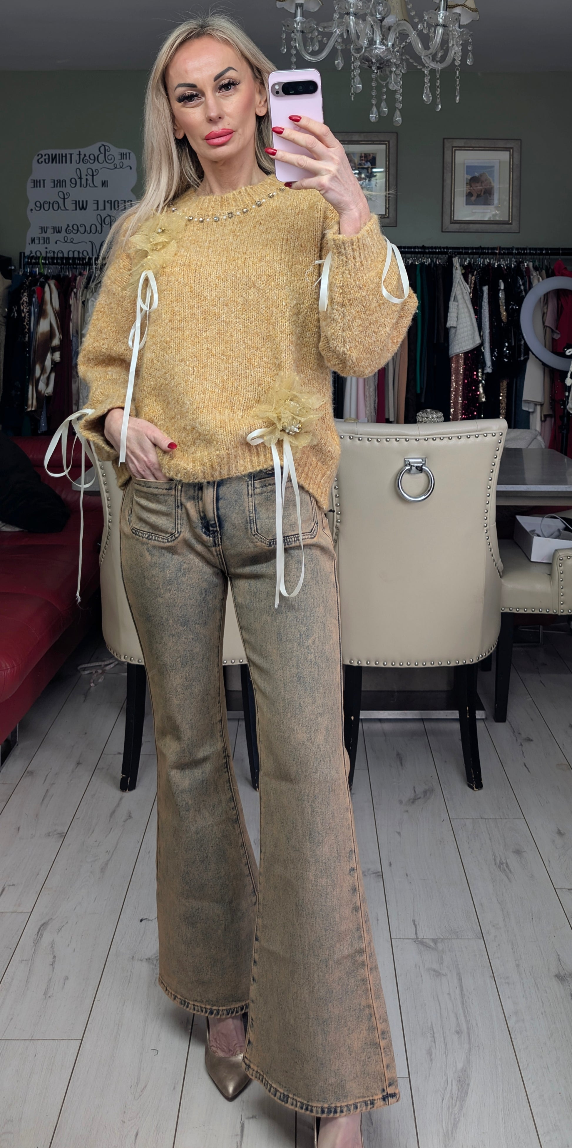 Unique Sweater With Flowers Pearls, Stones, Ribbon
